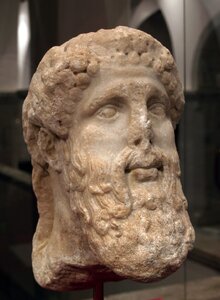 Το κεφάλι του Διονύσου σε παριανό μάρμαρο κλασσικής εποχής 6ου αιώ π.χ. ( εικάζεται από τον ναό του Διονύσου που υπήρχε στην αρχαία πόλη Μυρρινούσα στην Πάτμο).