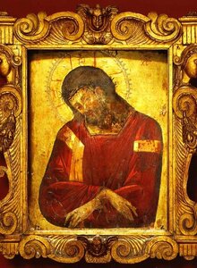 Επιτραχήλιο (15ος αιώνας ) Χαρακτηρίζεται ώς τό επιτραχήλιο τών ιεραρχών. Στόν τράχηλο εικονίζεται ο Χριστός ώς Μέγας Αρχιευρεύς. Κατά μήκος τών λωρίδων ψηλά η Θεοτόκος καί ο Ιωάννης τής Δεήσεως. Ακολουθούν τρία ζεύγη, ένα Αποστόλων καί δύο Ιεραρχών: Πέτρος - Παύλος , Γρηγόριος - Βασίλειος , Χρυσόστομος - Νικόλαος.