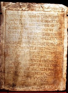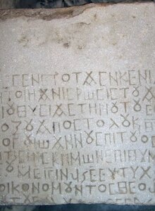 Η ιστορική σημασία έχει η επιγραφή πού αναφέρεται στήν τελετή εγκαινίων τῆς Αγίας Τραπέζης τῆς πρώτης βασιλικής τού Ευαγγελιστού Ἰωάννου. ( 3ος-4ος αιώ μ.χ.),
