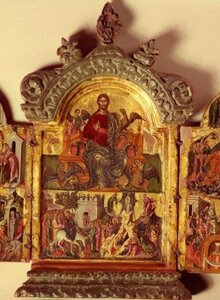 1821). Ξύλο σκαλισμένο καί τριγύρω ασήμι, χρυσός καί πολύτιμοι λίθοι. Η μία όψη έχει τή Σταύρωση, η άλλη τή Βάπτιση καί γύρω τό Δωδεκάορτο καί οι 4 Ευαγγελιστές. επίσης, αναφέρουμε: